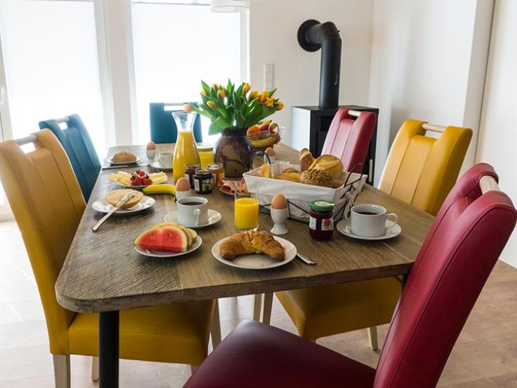 Die Sonne strahlt und Kaffeeduft liegt in der Luft - was gibt es Schöneres am Morgen! Genieße den ersten Kaffee oder Tee in dem gemülichen Essbereich im Wohnraum. An dem großen Tisch kann man sich natürlich nicht nur das Frühstück, sondern auch alle weiteren Mahlzeiten mit den Liebsten richtig schmecken lassen.